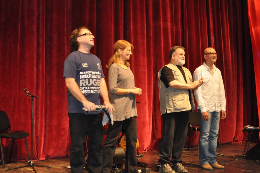 S-a aplaudat furtunos, cu ovaţii la final, iar bisul a fost şi el de clasă. Celebra „Fabrici şi uzine” cântată de Alexandru Andrieş singur pe scenă, el, vocea sa specială şi o muzicţă. Şi mesajul său de protest, plin de umor, la adresa unui regimcăzut să sperăm definitiv.