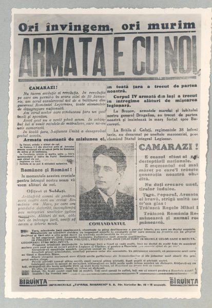 Alarmat de aceste măsuri, Horia Sima a convocat şefii Legiunii, în urma consultărilor hotărându-se organizarea unei demonstraţii şi redactarea unui apel prin care se solicita revocarea dispoziţiei referitoare la demiterea ministrului de Interne, îndepărtarea „elementelor satanice” Alexandru Rioşanu (subsecretar de stat în cadrul Ministerului de Interne) şi Eugen Cristescu-directorul Serviciului Special de Informații (SSI), respectiv formarea unui guvern legionar. Riposta şefului statului nu s-a lăsat mult timp aşteptată. El a destituit prefecţii legionari şi a ordonat, totodată, Armatei respectiv Jandarmeriei să asigure controlul celor mai importante instituţii publice. Întrucât legionarii au refuzat să evacueze clădirile ocupate, ciocnirile armate între gardişti şi forţele de ordine s-au extins la nivelul întregii ţări. În seara zilei de 21 ianuarie 1941 balanţa părea să încline de partea Gărzii, această impresie fiind întărită de atitudinea expectativă şi concesivă adoptată de şeful statului, interpretată de legionari ca o dovadă de slăbiciune. Situaţia a continuat să se deterioreze într-un ritm accentuat, criza atingând apogeul în ziua de 22 ianuarie 1941. Atât în capitală, cât şi în mai multe oraşe din provincie, au avut loc confruntări violente, soldate cu morţi şi răniţi, la care trebuie adăugate jafurile, tâlhăriile şi crimele comise de elementele declasate ale societăţii.?