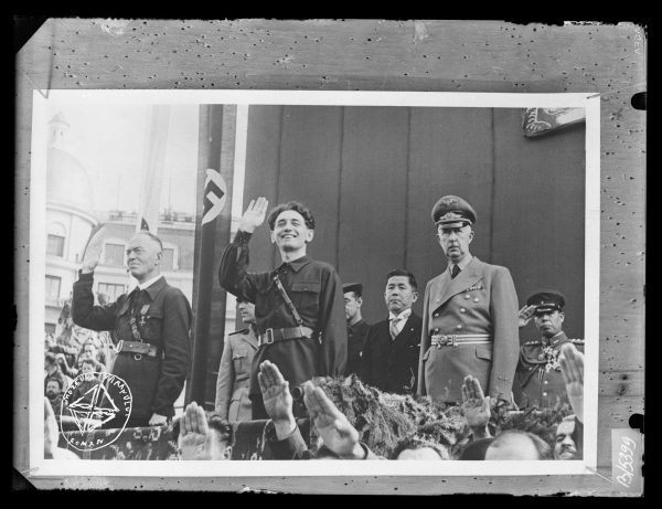 Mareșalul Ion Antonescu, Conducătorul Mișcării Legionare, Horia Sima, Fabricius, ministru plenipotențial al celui de-al Treilea Reich la București. Foto Iosif Berman. Muzeul Țăranului Român, fondul Iosif Berman via Adrian Cioflâncă, pagina de facebook