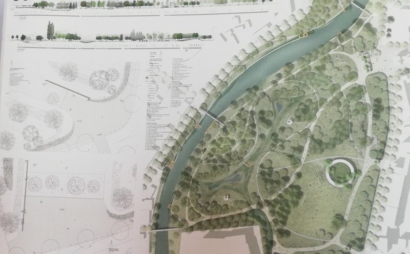 „Am încercat să ne jucăm cu apa, cu acest element al Someșului, pe ambele maluri și, în același timp, să ne jucăm cu apa într-o formă ceva mai diferită: în zone inundabile ce se realizează printr-un sistem de captare a apelor pluviale, care să aducă acel element atractor pe care tema îl cerea, un element natural care să dezvolte o biodiversitate pe toate nivelele. Aceste degradeuri legate de Someș se referă și la partea de funcțiuni – există fâșii cu anumite grade de activități și activare – ele sunt mai lniștite în zona Someșului și cresc progresiv pe măsură ce se apropie de zona constituită sau în proces de constituire. În ceea ce privește arhitectura, aceasta e gândită ca fiind cât mai noninvazivă, la un moment dat poate chiar să plece de acolo; sunt elemente simple, structuri metalice, care sunt reversibile, ce lasă natura să le includă și să facă parte din acest scenariu în care se găsesc niște locuri cu identitate în cadrul acestui parc. Am imaginat 30 de scenarii posibile, ilustrate în manieră ludică, care se regăsesc în diverse puncte. Cel mai ofertant e un spațiu liber din parc, această pajiște urbană care conține și elementul de centru de interes și care poate concentra diverse activități”, a spus Vlad Rusu.