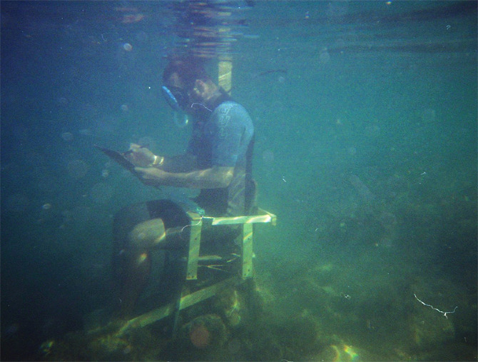Artistul spune ca a creat instalaţia pentru a-i face pe oameni să experimenteze un alt mediu. “Apa formează în jurul omului un fel de câmp protectiv. Presiunea îţi învăluie întreg trupul şi face ca până şi sunetele cele mai apropiate să pară ca şi cum vin de foarte departe. Într-un astfel de mediu omul devine mult mai conştient de propriul corp, de fizicalitatea sa. Inspiră, expiră. Limitarile pe care le simte în acest mediu îi dezvăluie noi posibilităţi de a se exprima. Însăşi mişcarea mâinii în timp ce desenează este schimbată. Trebuie să te lasi surprins de rezultatul muncii tale.” explică Grabowski.