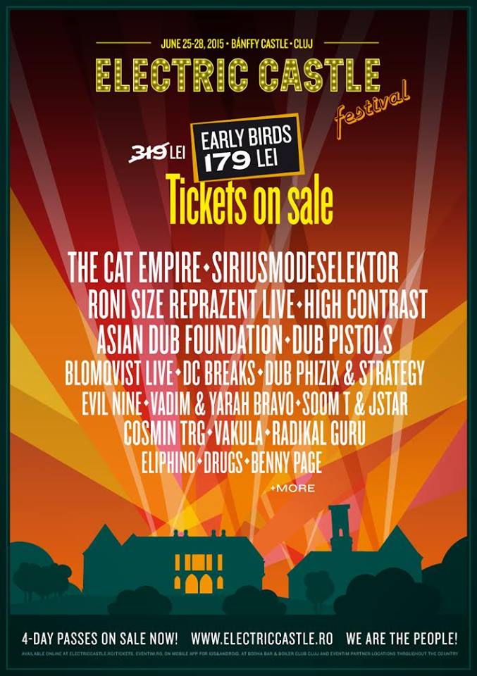 De asemenea s-au pus în vânzare deja bilete la festival pe eventim.ro, electriccastle.ro, mobile app-ul Electric Castle (iOS & Android),  rețeaua Eventim (Domo, Germanos, Orange,Vodafone, Cărturești) și locațiile partenere Electric Castle.