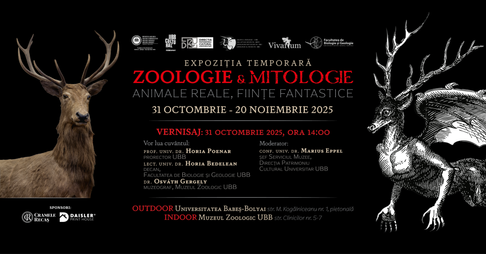 Universitatea Babeș-Bolyai din Cluj-Napoca (UBB), prin Direcția Patrimoniu Cultural Universitar și Muzeul Zoologic, organizează expoziția „Zoologie și mitologie: animale reale, ființe fantastice”.