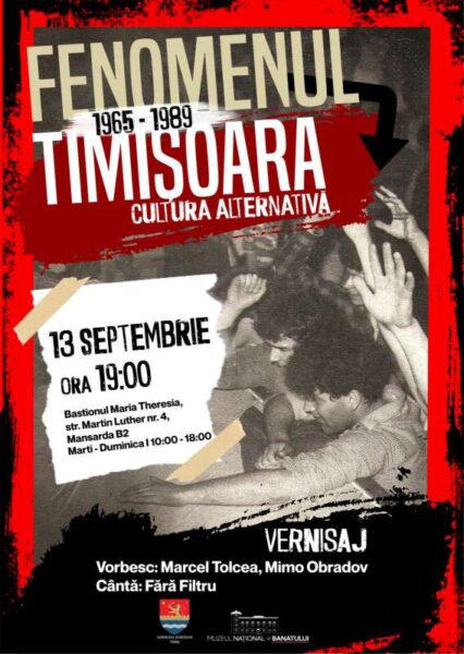 Muzeul Naţional al Banatului (MNB), cu sprijinul Consiliului Judeţean Timiş, vernisează, marţi, 6 septembrie, expoziţia-tribut „Fenomenul Timişoara. 1965 – 1989”, dedicată primului oraş liber de comunism din România, prin sute de fotografii şi produse audio şi video, care vorbesc despre ipostaze nonconformiste mai puţin cunoscute ale cetăţii din acea perioadă.