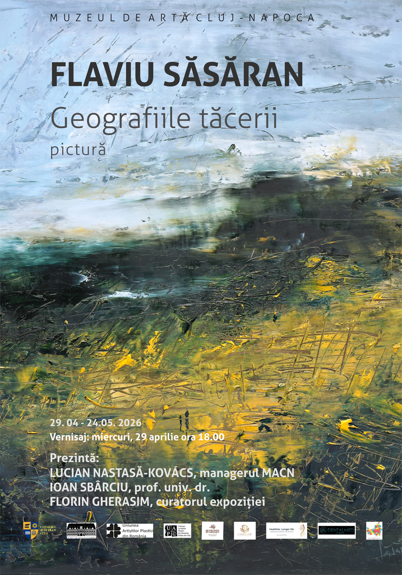 Muzeul de Artă Cluj-Napoca, instituție de cultură care funcționează în subordinea Consiliului Județean Cluj, organizează expoziția personală de pictură Geografiile tăcerii a artistului Flaviu Săsăran, în perioada 29 aprilie – 24 mai 2026. Vernisajul va avea loc miercuri, 29 aprilie 2026, de la ora 18:00, în sălile de expoziții temporare ale Palatului Bánffy, în prezența artistului și invitaților săi. Vor rosti alocuțiuni la deschidere domnii Lucian Nastasă-Kovács, managerul instituției, prof. univ. dr. Ioan Sbârciu, și Florin Gherasim, muzeograf, curatorul expoziției.
