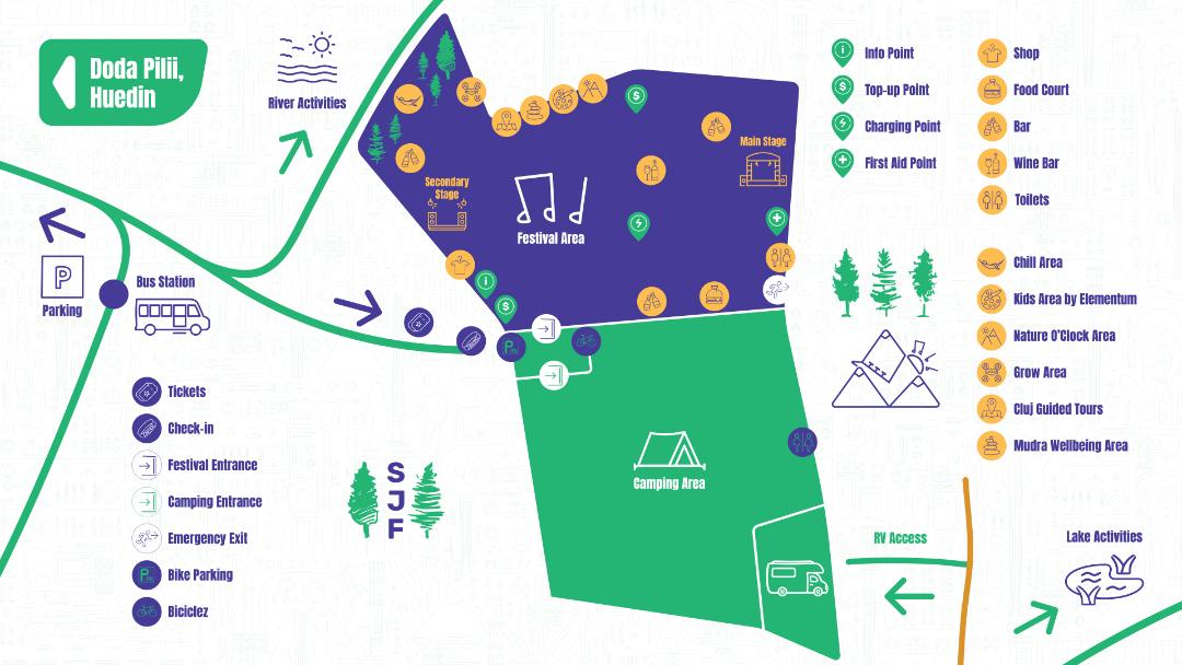 Harta festivalului, precum și punctele de interes se regăsesc în harta de aici: https://smidajazz.ro/wp-content/uploads/2021/08/Smida-2021-Harta-festival-Detaliu-Web.jpg. Participanții sunt încurajați să o descarce pe telefon sau să se folosească de hărțile de mari dimensiuni amplasate în festival pentru orientare.