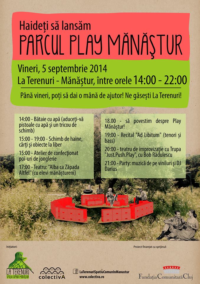 Play Mănăștur! Azi se lansează ”la Terenuri” primul spațiu ASUMAT de comunitate din Cluj. Joacă, loisir, activități, liberă expresie. Poate merită să vedeți ce și cum, dar, mai mult, poate merită să vă exprimați și voi activ.
