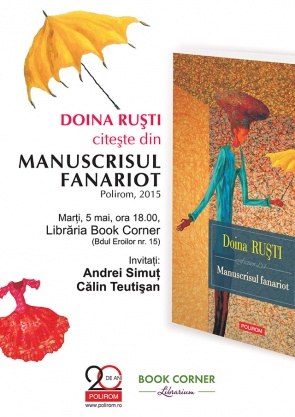 Librarium și editura Polirom vă invită marți, 5 mai, de la ora 18.00, la o întâlnire cu Doina Ruști și cel mai recent roman al său – Manuscrisul fanariot. Întâlnirea cu autoarea va avea loc la librăria Book Corner (Bulevardul Eroilor, nr 15).