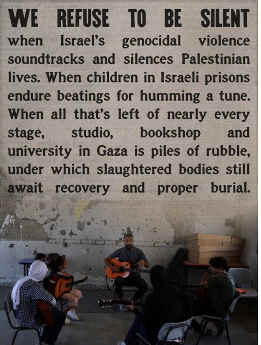 „În calitate de muzicieni şi lucrători din domeniul cultural, refuzăm ca Eurovisionul să fie folosit pentru a albi şi normaliza genocidul, asediul şi ocupaţia militară brutală a Israelului împotriva palestinienilor”, scriu ei.