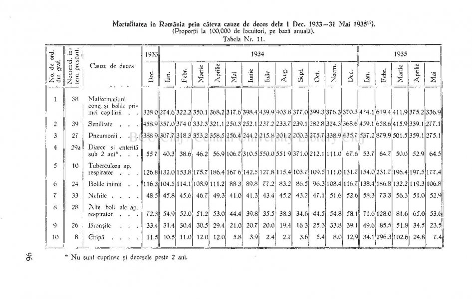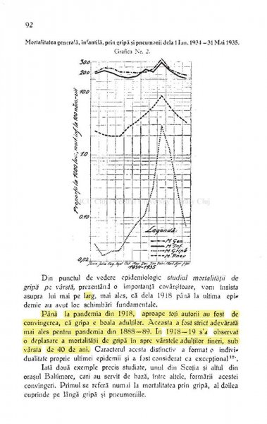 Un studiu serios despre epidemia de gripă din România din 1934 (cea mai gravă după cea din 1918, pentru care nu avem cifre precise), care a cuprins întreaga țară într-o săptămână, a durat 4 luni, a îmbolnăvit aproape 240.000 de români și a omorât peste 46.000, în special copii și tineri, mai mult bărbați decât femei, într-o proporție mai mare în mediul rural decât în cel urban, scrie istoricul ieșean Adrian Cioflâncă.