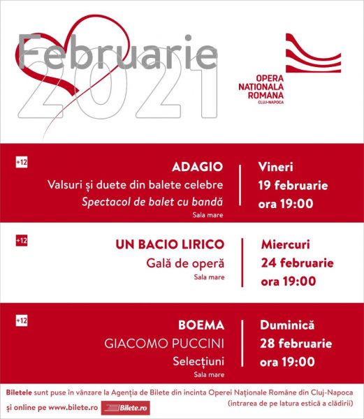 După aproape șase luni de distanțare fizică impusă de răspândirea pandemiei COVID-19, teatrul liric  își ridică din nou cortina cu trei invitații de nerefuzat, promise pentru luna februarie: un eveniment coregrafic, o gală de operă, și un spectacol de operă în concert.
