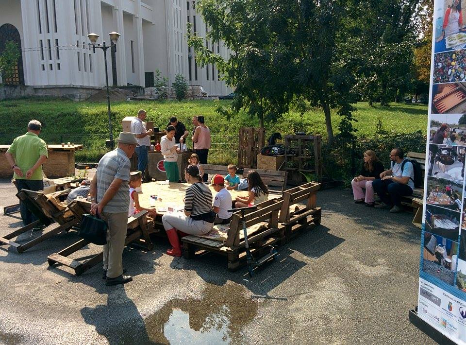 Am construit pe platoul pieței Unirii un ansamblu de mobilier din paleți refolosiți, ansamblu care reproduce familiaritatea sufrageriei de acasă. Scopul acestui concept este de a ne obișnui cu ideea că orașul este și el casa noastră, a tuturor și în același timp faptul că noi toți aparținem aceleași comunități. Este un exercițiu de comunicare interumană care urmărește să stabilească conexiuni între cetățeni ai orașului care altfel, poate, nu au ocazia să schimbe păreri sau idei. În același timp urmărește să sensibilizeze trăitorii orașului să își asume nevoile urbei și să participe la construirea unui mediu comunitar urban sănătos, explică arhitectul Dan Clinci, fondator Urbannect.