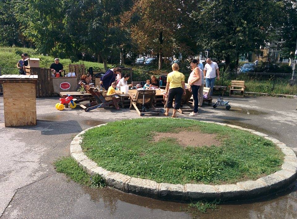 Masa de discuţii instalată în Parcul de pe strada Primăverii de Asociaţia Urbannect- (c) clujulcultural.ro