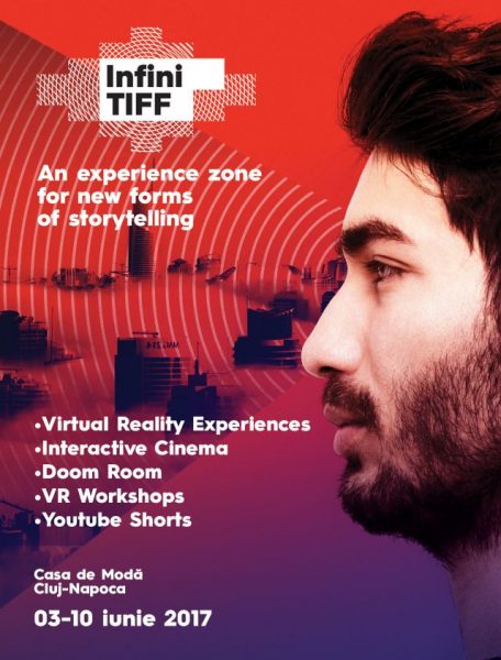 Un spațiu al inovației și experimentelor va fi inaugurat anul acesta la Festivalul Internațional de Film Transilvania (Cluj-Napoca, 2 – 11 iunie 2017). InfiniTIFF, amenajat în fosta Casă de Modă din Cluj-Napoca, este o platformă dedicată noilor forme de storytelling audiovizual și își propune să-i conecteze pe cinefili și artiști la ideile și inovațiile de ultimă oră în materie de realitate virtuală/ Virtual Reality (VR) și cinema interactiv. Spațiul este susținut de Samsung prin tehnologia Gear VR și propune publicului o experiență captivantă de vizionare și de interacțiune cu lumea filmului. TIFF se înscrie astfel în trendul marilor festivaluri precum Cannes sau Tribeca (New York) care plănuiesc anul acesta, la rândul lor, evenimente extinse dedicate VR-ului.