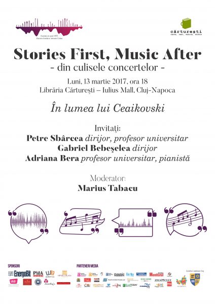 Filarmonica de Stat „Transilvania”, în parteneriat cu Librăria Cărtureşti (Iulius Mall) vă invită luni, 13 martie, de la ora 18, la al treilea eveniment din seria „Stories First, Music After – din culisele concertelor” – care va prezenta o incursiune în lumea compozitorului Piotr Ilici Ceaikovski.