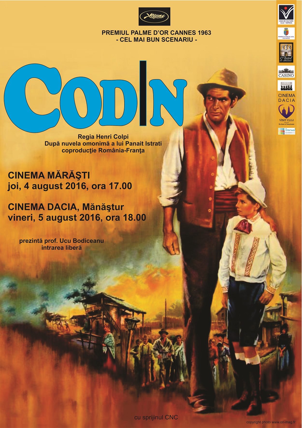 Continue ReadingFilmul Codin, o coproducţie România-Franţa, regia Henri Colpi, dupa nuvela omonimă a lui Panait Istrati. va fi proiectat la Cluj. Pelicula a primit Premiul Palme d’Or la Festivalul de la Cannes in 1963 pentru cel mai bun scenariu. Puteţi vedea filmului la Cinema Marasti, joi, 4 august 2016, ora 17.00 dar şi la Cinema Dacia, […]