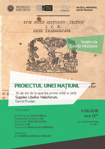 Manifestarea, ce poartă titlul „Proiectul unei națiuni. 70 de ani de la apariția primei ediții a cărții Supplex Libellus Valachorum, David Prodan”, își propune să constituie un moment de aducere aminte, dar și un prilej de reflecție asupra operei istoricului David Prodan, în ziua în care se împlinesc 26 de ani de la trecerea în eternitate a acestuia.