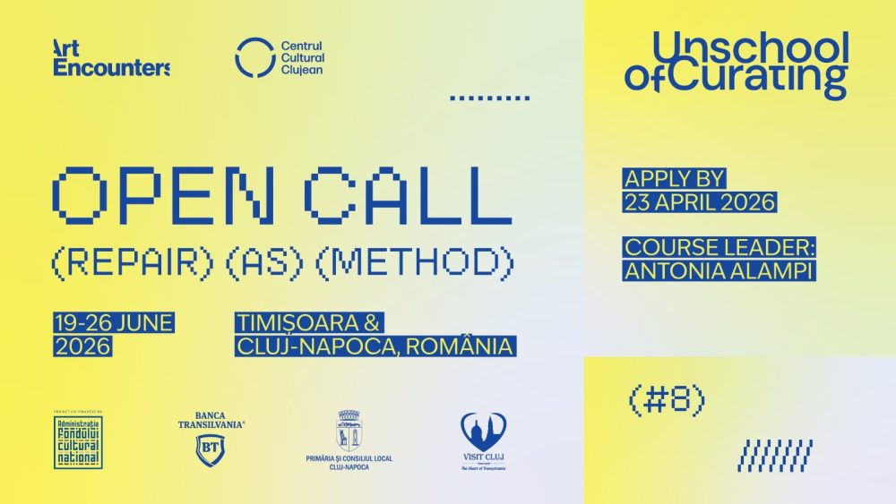 Centrul Cultural Clujean (Cluj-Napoca) și Fundația Art Encounters (Timișoara) au lansat apelul deschis pentru cea de-a opta ediție a Unschool of Curating, un seminar dedicat curatorilor emergenți în domeniul artei contemporane. Programul, care va avea loc între 19–26 iunie 2026 în Timișoara și Cluj-Napoca, se adresează unui număr de 20 de curatori români și internaționali, cu minim 3 ani de experiență, aleși prin apel deschis.