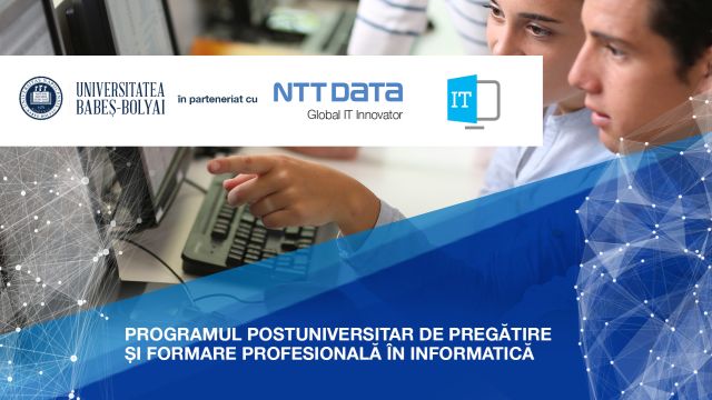 Universitatea “Babeş-Bolyai”, cu sprijinul companiei NTT DATA Romania, lansează a doua serie din Programul Postuniversitar de Pregătire şi Formare Profesională în Informatică.