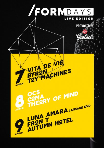 Vineri, 7 aprilie, la /Form Space vor concerta Vița de Vie, Byron și Toy Machines.
