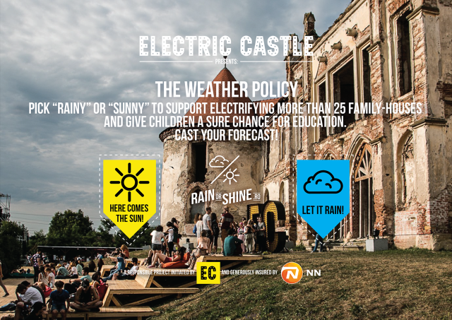 RAINORSHINE.RO este platforma online dedicată inițiativei semnate de Electric Castle și susținute de NN, unde sunt disponibile informații despre „The Weather Policy” și cauza socială, respectiv necesitatea luminii și electricității în casele celor 25 de familii. Totodată, platforma permite și înscrierea propriei prognoze meteo prin alegerea uneia dintre cele două opțiuni: „Va ploua la Electric Castle” / „Va fi soare la Electric Castle”.